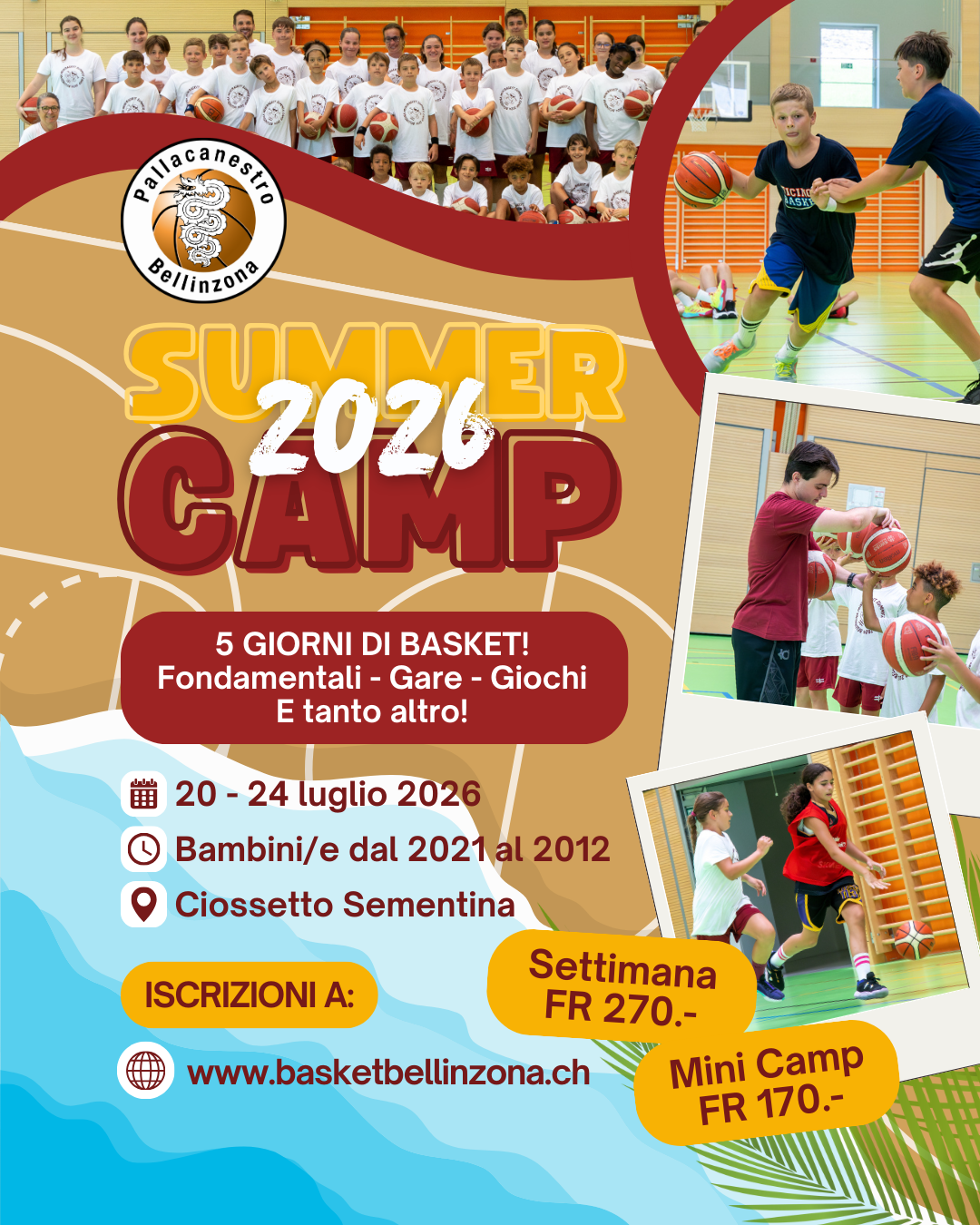 La Pallacanestro Bellinzona organizza un camp estivo riservato alle categorie U8, U10, U12 e U14.